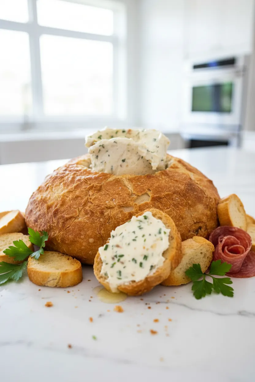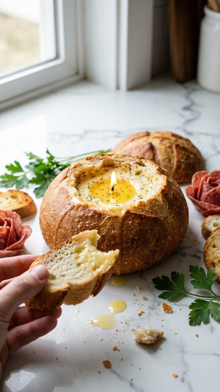 With your bread bowl ready, it’s time for the final reveal. This is the moment where your creation comes to life as an interactive, delicious centerpiece.