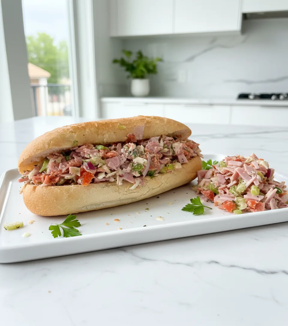 The secret lies in the chopping technique, which ensures a perfect bite every time. If you love this style of all-in-one sandwich, you should also try the classic grinder salad sandwich.